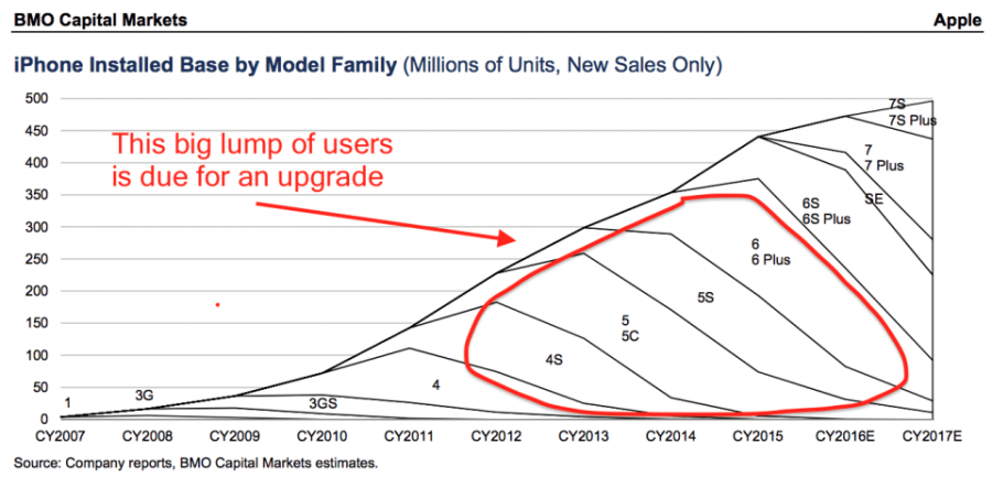Arcuri’s theory is that, over the next few quarters, 43% of iPhone users will be using a device older than two years and will be ready for an upgrade… More at Business Insider