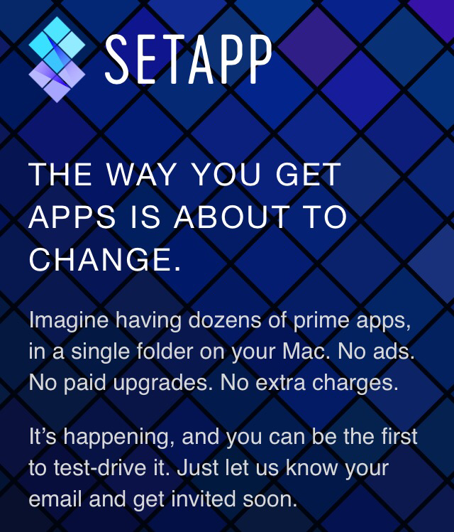 SETAPP: a better Mac App Store By Shaun on November 7, 2016 • ( 0 ) The current MAC App Store is, how do I put it, not great. Maybe SETAPP will offer a better alternative. Share this: Click to share on X (Opens in new window) X Click to share on Facebook (Opens in new window) Facebook Like Loading...‹ So what happens if Apple doesn’t make another iPhone SE?Casio G-Shock Master Of G Gulfmaster GWNQ1000-1A ›Categories: Apple