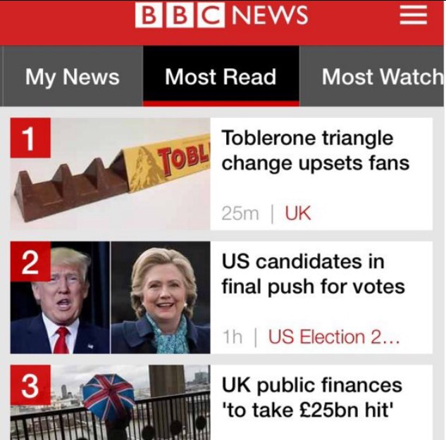 Meanwhile in Britain… By Shaun on November 8, 2016 • ( 1 ) You can’t accuse us of not knowing what is really important… Share this: Click to share on X (Opens in new window) X Click to share on Facebook (Opens in new window) Facebook Like Loading...‹ Omega DynamicThe iPhone is almost everything to Apple ›Categories: Misc