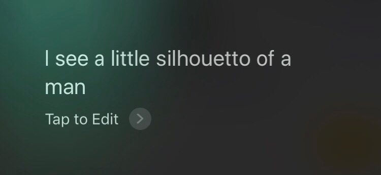 I see a little silhouetto of a man By Shaun on July 25, 2017 • ( 0 ) Say the above to Siri. He/she cannot sing, but it’s kind of fun. Share this: Click to share on X (Opens in new window) X Click to share on Facebook (Opens in new window) Facebook Like Loading...‹ BejlaTurn off your push notifications ›Categories: iPhone