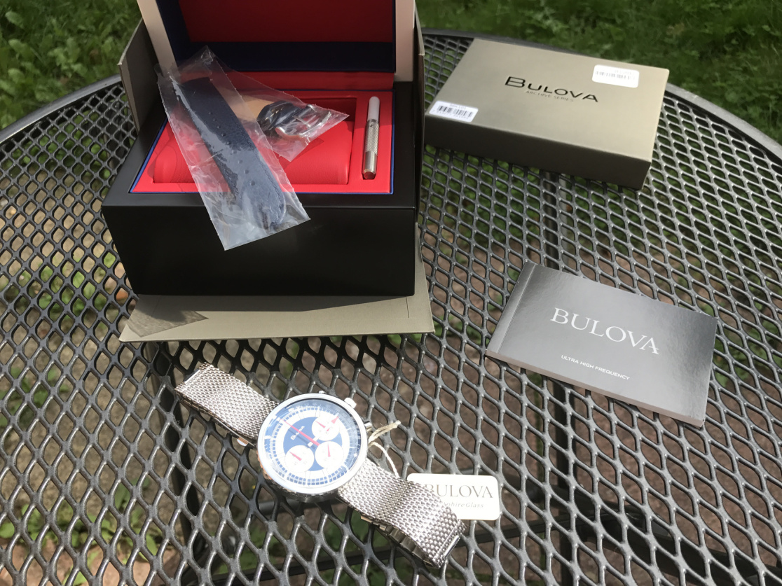 The ‘Archive Series’ box is a step up from the standard Bulova boxes and you get a blue leather strap and a strap adjustment tool alongside the watch. The manual is a standard high frequency booklet so is not aimed at this particular watch, but it tells you what you need to know. For me, the blue strap actually looks nicer than the mesh strap that is attached to the watch, but it would be nice to see an easier way to change it than the classic ‘scratch the hell out of your watch’ tool that is supplied.