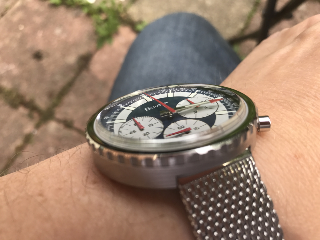 The 96K101 is different to other watches and impossible to define for many people. It looks like a 1970’s watch because the design is from 1970 when the original was born, and Bulova has made sure that it is very much a clone from 47 years ago. The original was 43mm in diameter which is huge for a vintage watch- watches really started to get small in the 1980’s, but in the 1970’s brands like Bulova did not worry about size too much and this worked well to highlight the colours, the design and the general look of the watch.