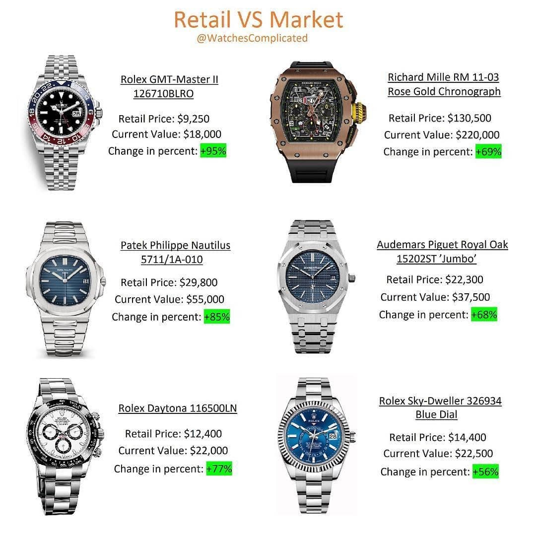 The fact you can go out and buy a watch today and potentially make a profit of up to 95% tomorrow is crazy. It’s symptomatic of the way the watch industry convinces some of us that there is value in buying something that is difficult to attain, something that Rolex and Patek are pulling the strings on harder than most at this time.