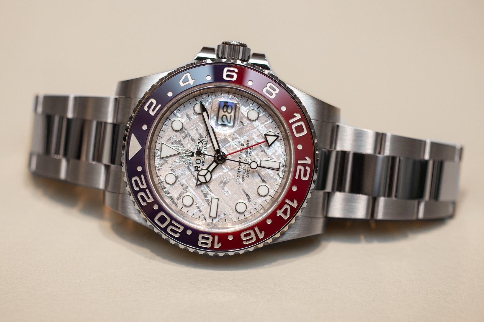 Don’t worry though. There’s always Rolex to take things even further in terms of poor taste as is demonstrated by the Rolex GMT-Master II Ref. 126719 BLRO With Meteorite Dial In White Gold below.