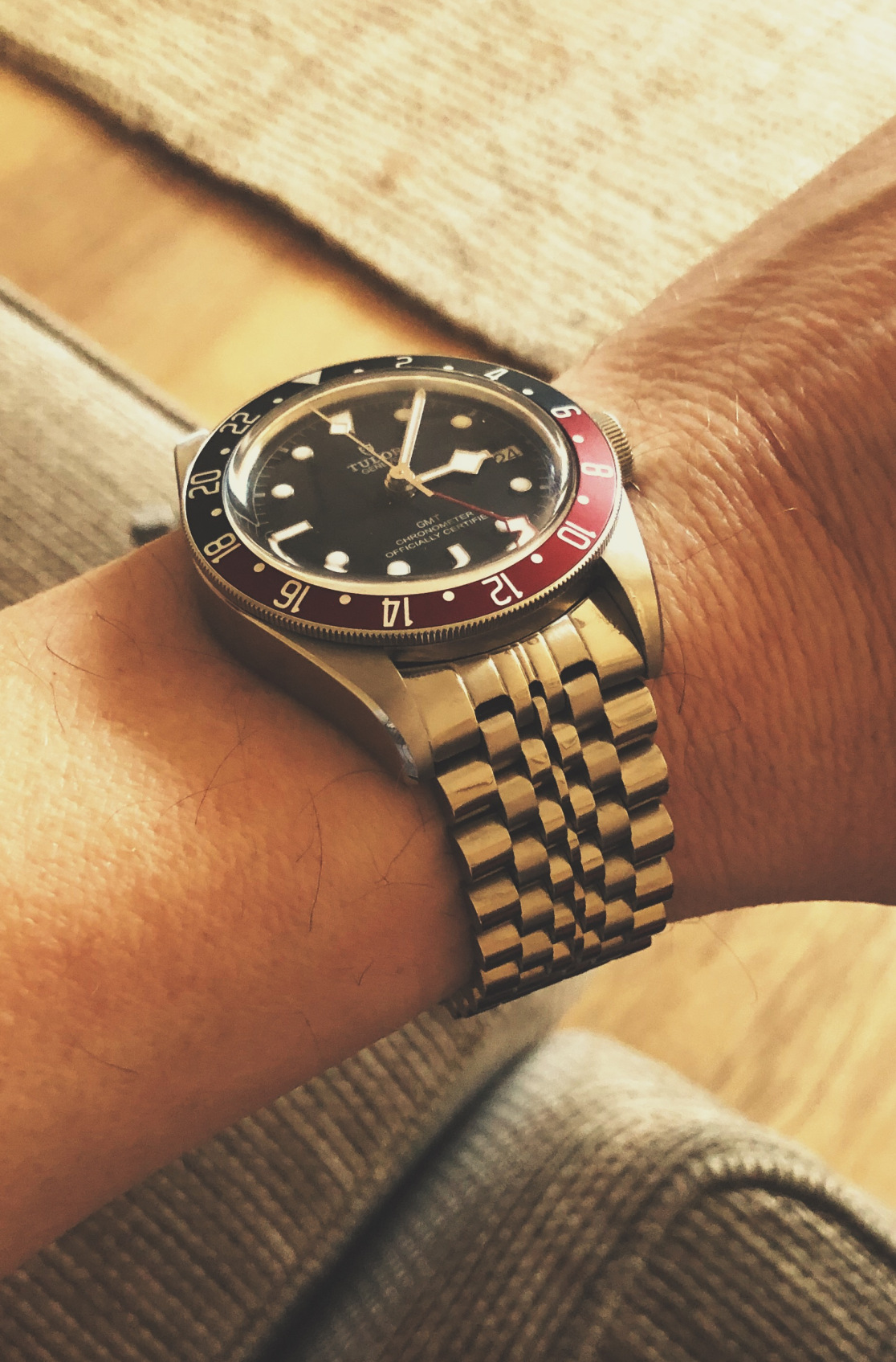 It was a tough buy because I always wanted the gold hands of the Black Bay Heritage, but when the jeweller emailed me to say that a GMT had come in and asked if I wanted it, I jumped. Besides, I can buy a Black Bay Black at any time because they are everywhere, the GMT is not.