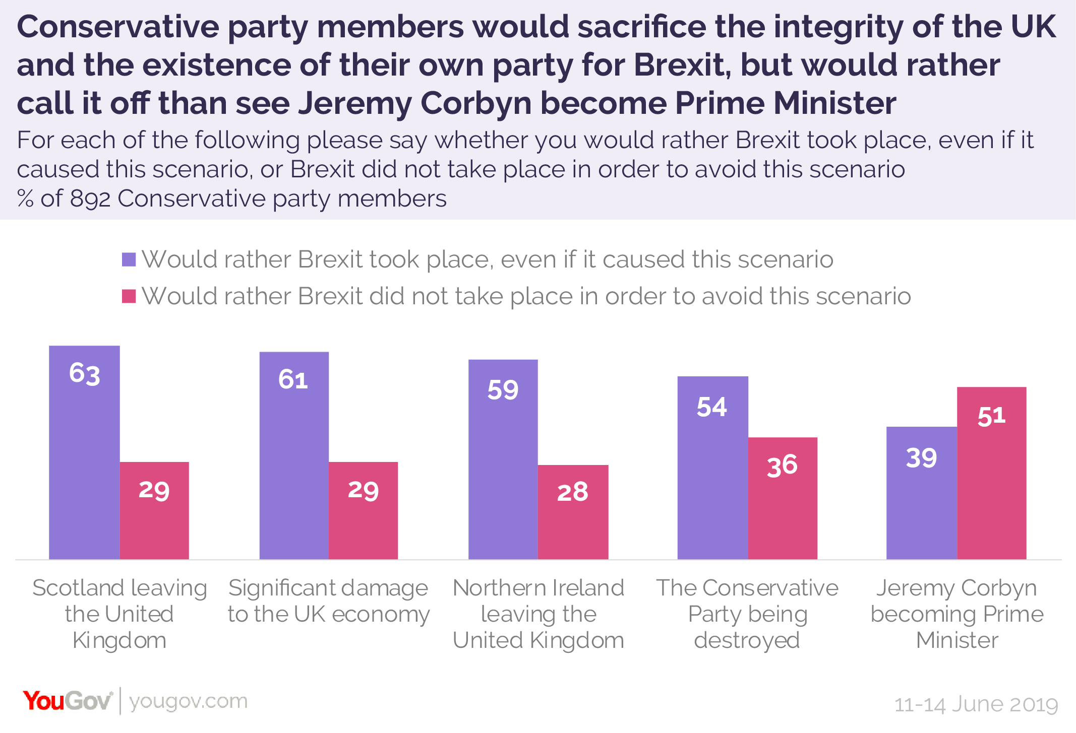 There is one area, however, in which the Conservative members would give up Brexit (51% to 39%) and that is to stop Jeremy Corbyn becoming Prime Minister. Well, that is interesting because is shows that the old tribal allegiances are alive and kicking, but of course Jeremy Corbyn is a huge part of the problem for people like me.