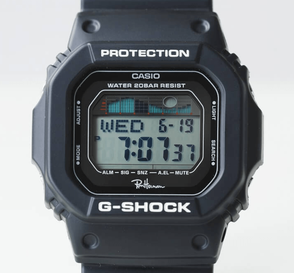 The limited edition watch is a matte black GLX-5600 with a Ron Herman logo on the lower face and a special 10th anniversary engraved case back. Ron Herman Japan has been a regular collaborator with G-Shock over the years and usually uses a G-LIDE surfing model with a tide and moon graph as the base… More here.