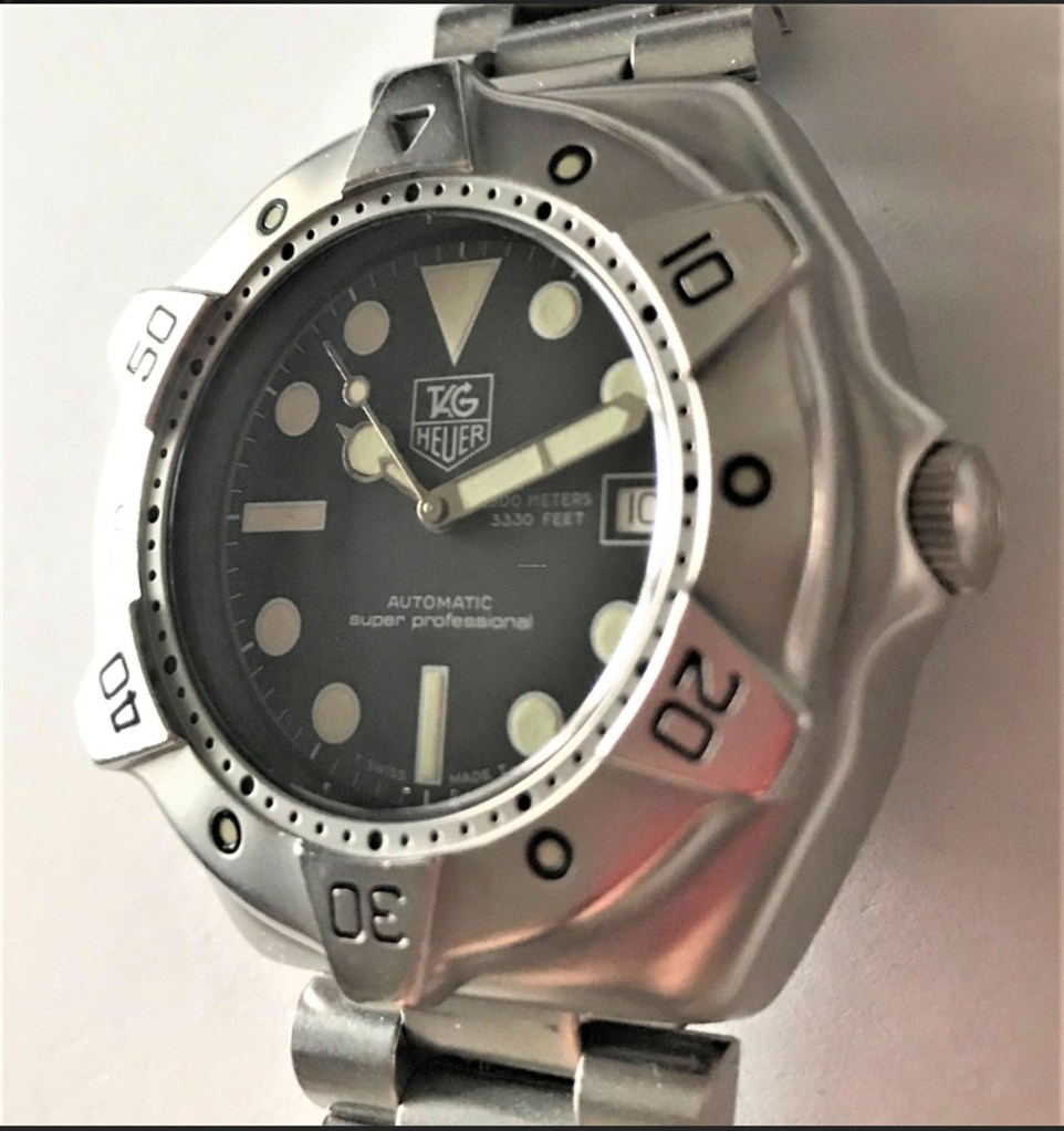 Waaaaay back in 1984 – the year Mary Lou Retton tore up the Olympics in L.A. – Heuer was still a thing and they plopped a dive watch into its catalog called the Super Professional. From a brand that had been making some barely warmed-over quartz crap divers and other things masquerading as Rolex Sub knockoffs, the Super Pro was a serious departure. Armed with a front-loading case, a bezel that looks like it could, and happily would, kick the ass out of Jaws, this diver was good down to 1000 meters. Whether in stainless, stainless with 80’s (aka, sexy) gold bezel, or ultra-rare PVD, the Super Professional was ready to take on whatever came its way. A short year later, in ’85, the watch became the TAG Heuer Super Professional and it soldiered on until the millennium as the 840.006. After Y2K, it grew slightly to 43mm in diameter and became the WS2110. Eschewing battery power, the Super Professional sported an ETA 2892… More here.