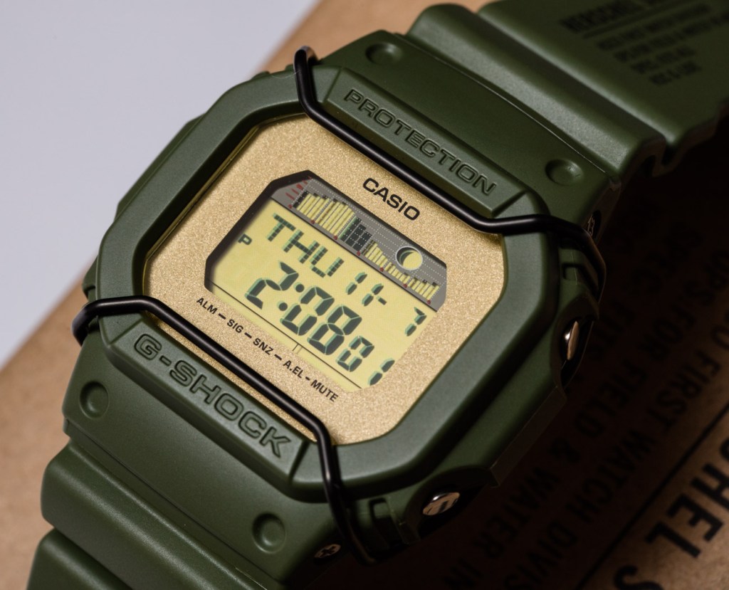 To sum up the timepiece, it imagines itself as what a G-Shock would look like if these products existed at the time when United States veterans were returning from the Vietnam War (and bringing their timepieces back with them). The inspiration for the watch was actually a Zippo lighter from the era that was owned by a soldier and that had “You Can Surf Later” stamped into the steel case. That same statement, with the same font, is stamped into the back of this watch, complete with a period-appropriate font. It makes you smile to read it, and it also helps explain why Herschel decided to use the G-Shock G-Lide watch, which is actually intended for surfers, with its moon phase and tide chart indications on the dial. Don’t miss the gradually “re-trending” removable metal “screen protector” on the case that was popularized in the 1980s… More here.
