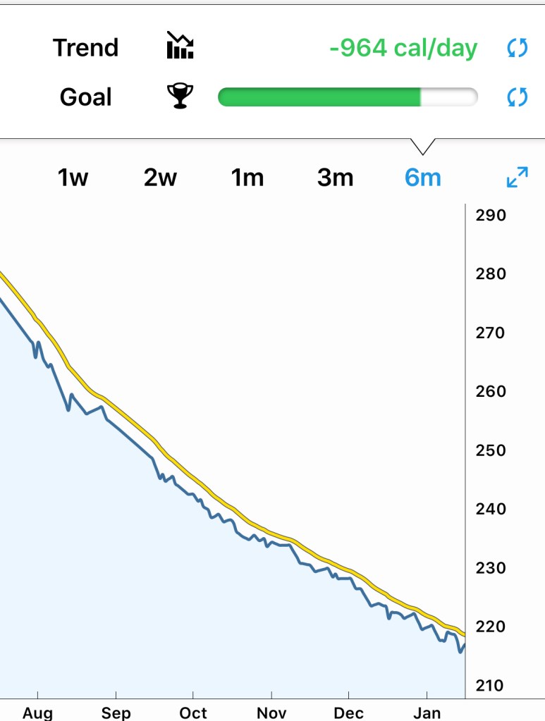 The problem then comes with keeping up the same regime when you hit your target weight, and you do have to keep up a regime forever to stick to a specific weight. People diet and then they stop, and then wonder why their weight goes back up? It’s easy really; calories + activity = weight and that never changes. Some people can eat a lot and stay light and people like me have to eat little to stay within range despite being over 6’ in height and big built. What should happen, however, is that once you know what you need to do you should be able to stick to that forever more and stay within a certain range. The habits have been built and you should not need a tracker to continually remind you.