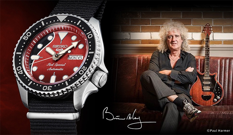 The new Seiko 5 Sports watch is constructed in a very different way but is also built to last. With the long-trusted caliber 4R36 at its heart, 10 bar water resistance, a Hardlex crystal and its robust steel case, it has all the qualities that have made Seiko 5 Sports so many fans down the decades. The dial has the same red and black color scheme as the ‘‘Red Special’’ and features a delicate wood-like pattern like the body of the guitar… More here.