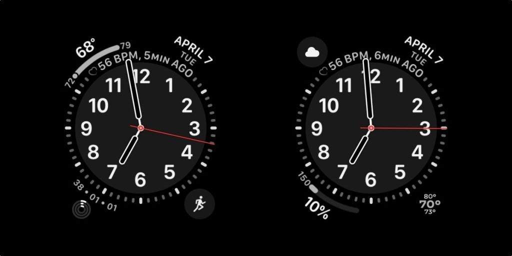 This set of complications can then be dynamically scheduled to appear on your watch face following rules you define. For example, a particular complication slot could show the weather first thing in the morning, then your calendar during your work day, then switch to your Activity ring progress as you wrap up your day. This lets you take full advantage of each slot on your watch face without the need to constantly switch back and forth between faces… More here.