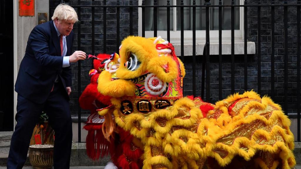 Johnson had found time that day, however, to join in a lunar new year dragon eyes ritual as part of Downing Street’s reception for the Chinese community, led by the country’s ambassador.