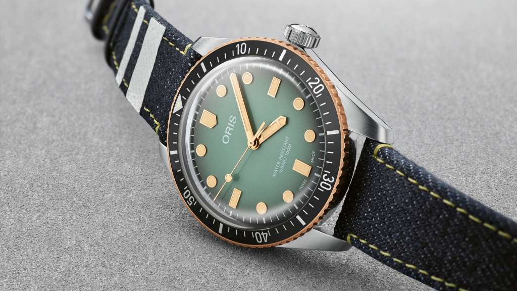 Momotaro was founded in 1992 and still carries the same “made by hand without compromise” mantra. For a special edition celebrating the brand and its renowned style, Oris went with their always special edition-ready Divers Sixty-Five and a sort of spin on the Movember editions we’ve seen in the past. Comprised of a 40mm steel case with a bronze bezel and a contrast-heavy black bezel insert, the most eye-catching element of the Momotaro edition is its soft gradient green dial, which starts in the center as a sort of minty-green and then fades to a dark grey-green on the outer edge of the dial. Match that with bronze-colored markers and tan lume that matches both the warm tones of the metal dial accents and the contrast stitching on the denim strap, and you’ve got an Oris that is both distinctive to other Divers Sixty-Five editions and rather cool… More here.