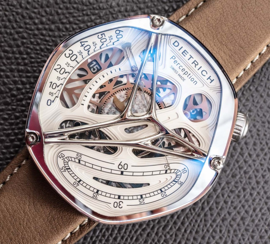 When Emmanuel Dietrich designed the Perception, his goal was not only to explore his interest in “biomorphic” industrial design, but also to more specifically play with how time is displayed. It is worth noting that one of the highest callings in the arena of watch design is to create a novel, or at least useful, way of indicating the time. The standard two or three central-hand dial is the industry norm, which some particularly esteemed designers like to eschew for the purpose of being different, and ideally being beautiful. The Perception doesn’t break new ground, per se, but it does incorporate two uncommon ways of indicating the time in one complete package, which ends up being as much “wow & wonderful” as it is “wild & weird.” More here.