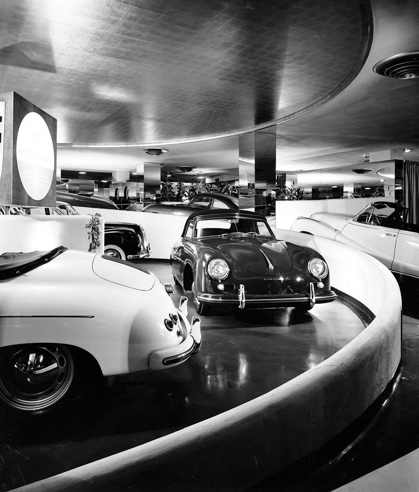 At the time, Porsche was a company without designers. The self-confident engineers considered it superficial and something of a luxury to think about design. The first Porsche, the 356, was a functionalist manifesto. The first prestigious Porsche salesroom on Park Avenue in New York was designed by the elderly Frank Lloyd Wright, whose final works also included a house for the Porsche importer Max Hoffmann built at the gates of New York. In pictures featuring a Porsche in front of Wright’s late work, the colors and forms of both house and sports car appear related. They were messengers of a new age that had already begun and whose victory was imminent… More here.