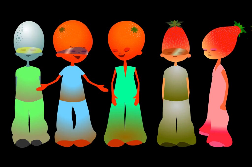 Although the name of the game escaped them, both had a clear memory of how it looked. In the game, you played as anthropomorphised fruit, interacting with other players in a garish 2D environment. The game, they remembered, was linked to a children’s food or drink brand – Fruit Winders or Ribena, perhaps – and the characters were painted with flat, bold colours, complete with horribly clashing blues and oranges.