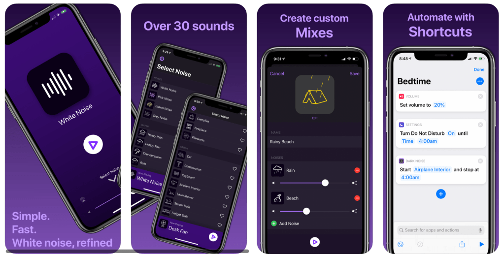 Each of the 40+ high quality sounds features a delightfully animated icon that brings the sound to life. Create custom mixes for an endless variety of soundscapes. Deep integrations with iOS make it easier than ever to start an ambient noise with a tap or even your voice! More here.