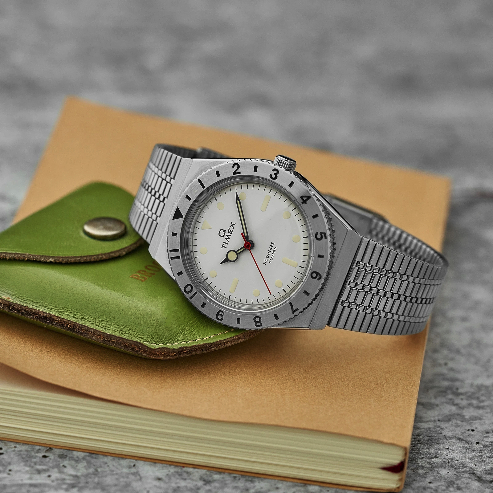 The Q-topped Timex branding at 12 o’clock remains the same as always – a proud indication of the quartz caliber inside – and we’ve paired it with a small black HODINKEE signature at six o’clock, balancing the dial even further. Underneath the HODINKEE stamp is the water-resistance rating – meters first – that indicates the Q Timex can be worn all day, every day, regardless of what you’re doing or where you’re going… More here.