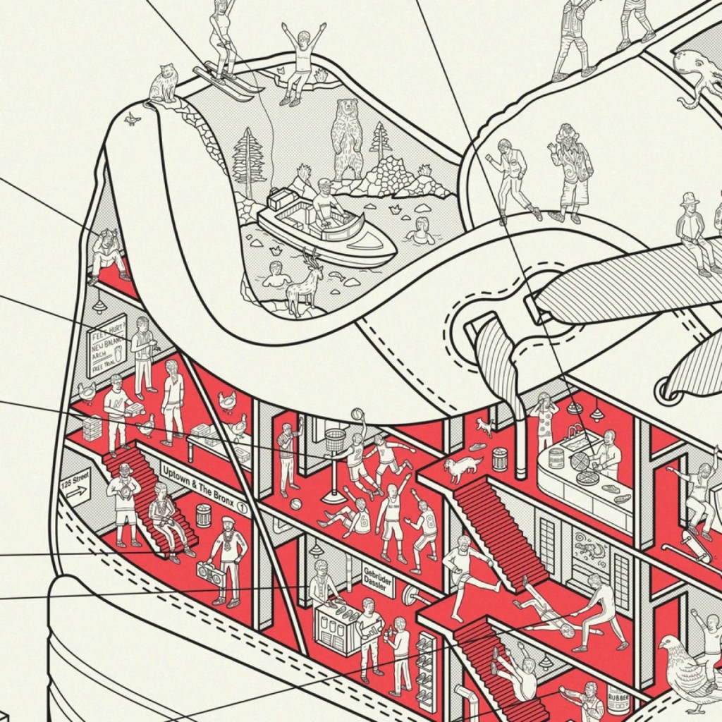 Starting with the invention of vulcanised rubber by Charles Goodyear in 1839 and including Jesse Owens domination of the 1936 Berlin Olympics in Dasslers, Bill Bowerman’s infamous experiments with his wife’s waffle iron, the invention of AIR technology by NASA Engineer Marion Franklin Rudy, the launch of Reebok InstaPump Fury and the realisation of Nike’s first self lacing trainers, designed by Tiffany Beers and released 26 years after they were first featured in Back to the Future Part II… More here.