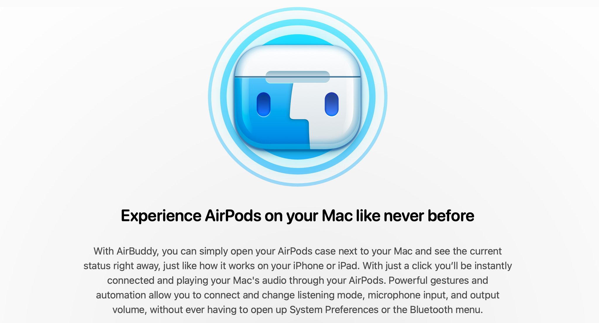 With AirBuddy, you can simply open your AirPods case next to your Mac and see the current status right away, just like how it works on your iPhone or iPad. With just a click you’ll be instantly connected and playing your Mac’s audio through your AirPods. Powerful gestures and automation allow you to connect and change listening mode, microphone input, and output volume, without ever having to open up System Preferences or the Bluetooth menu… More here.
