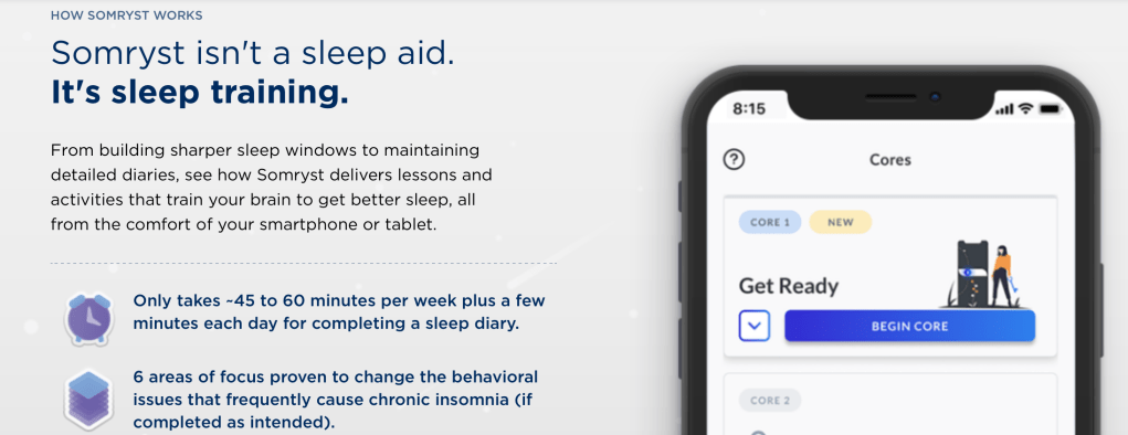 With Somryst, you get a treatment for chronic insomnia that’s proven, recommended, and ready to go at the touch of a button. Get better sleep that lasts.