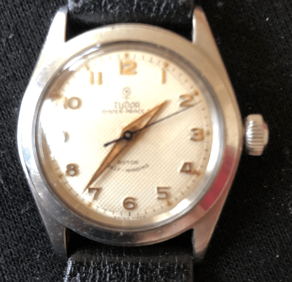 A friend of mine, Russ, recently inherited his Dad’s Tudor watch. It is a 1958 Tudor Oyster Prince 7909, the ‘Prince’ word denotes that it is self-winding.