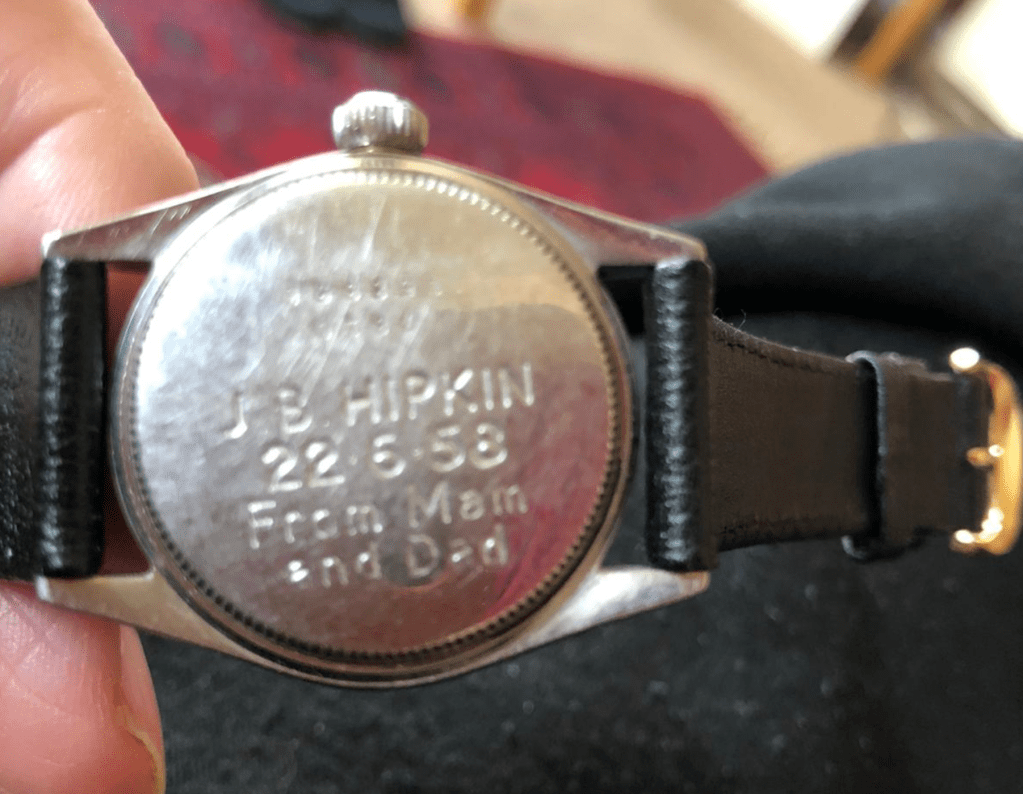 Turn it over and the engraving brings the history of the watch into context. The simple words, which were so commonly used at the time, say everything Russ needs to know; the recipient, the date it was given and who gave it. Three special people and a date- it means little to those outside of the family, but everything to Russ who can take the ‘Prince’ on further adventures in the future.