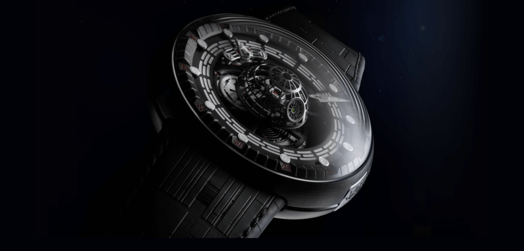 It is composed of a Death Star Tourbillon watch and an authentic kyber crystal movie prop from Rogue One: A Star Wars Story, delivered in an outstanding Imperial kyber crystal container… More here. Thanks to Kirk.