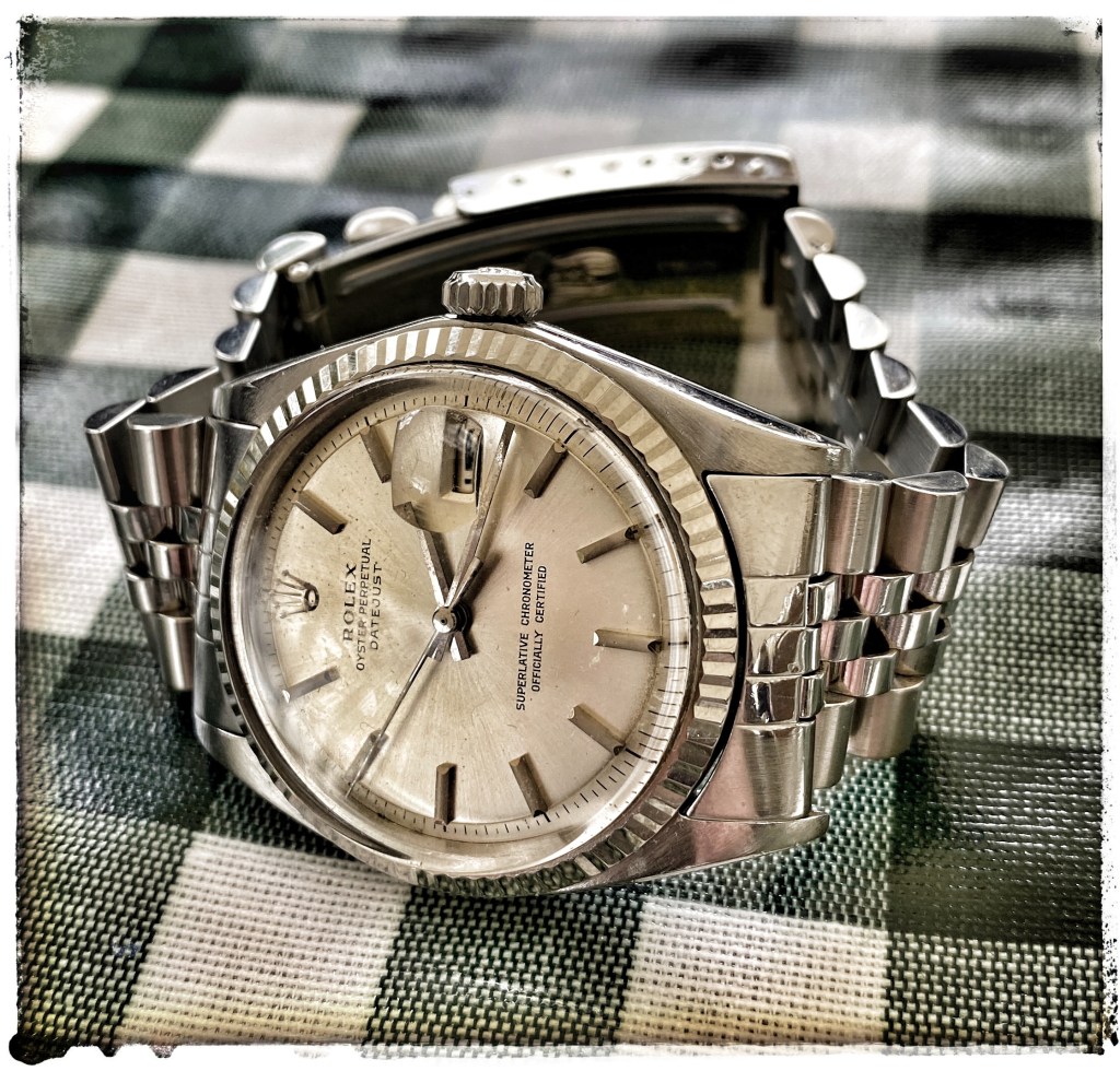 Think about it. If we bought him clothes, a car(!) or almost anything else the value would be lost in a very short space of time, but with a watch like this he has that money available at any point if needed. The value of this particular watch has steadily increased over time, but only steadily which is a very good sign and the fact that it suits him perfectly sealed the deal. The watch is 50 years old and the design has barely changed in all of that time with new Datejusts looking the same, and yet they never look out of date, or rather they look out of date in a way that never ‘feels’ out of date.