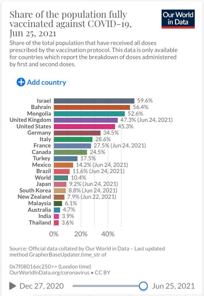 Look at Australia which is now experiencing outbreaks of the Delta variant, a country who has vaccinated under 5% of its population. New Zealand has vaccinated just 8% of its population. This is not over for either of them, but we can be confident that their leaders will find a way to deal with what is in front of them in the best way possible.