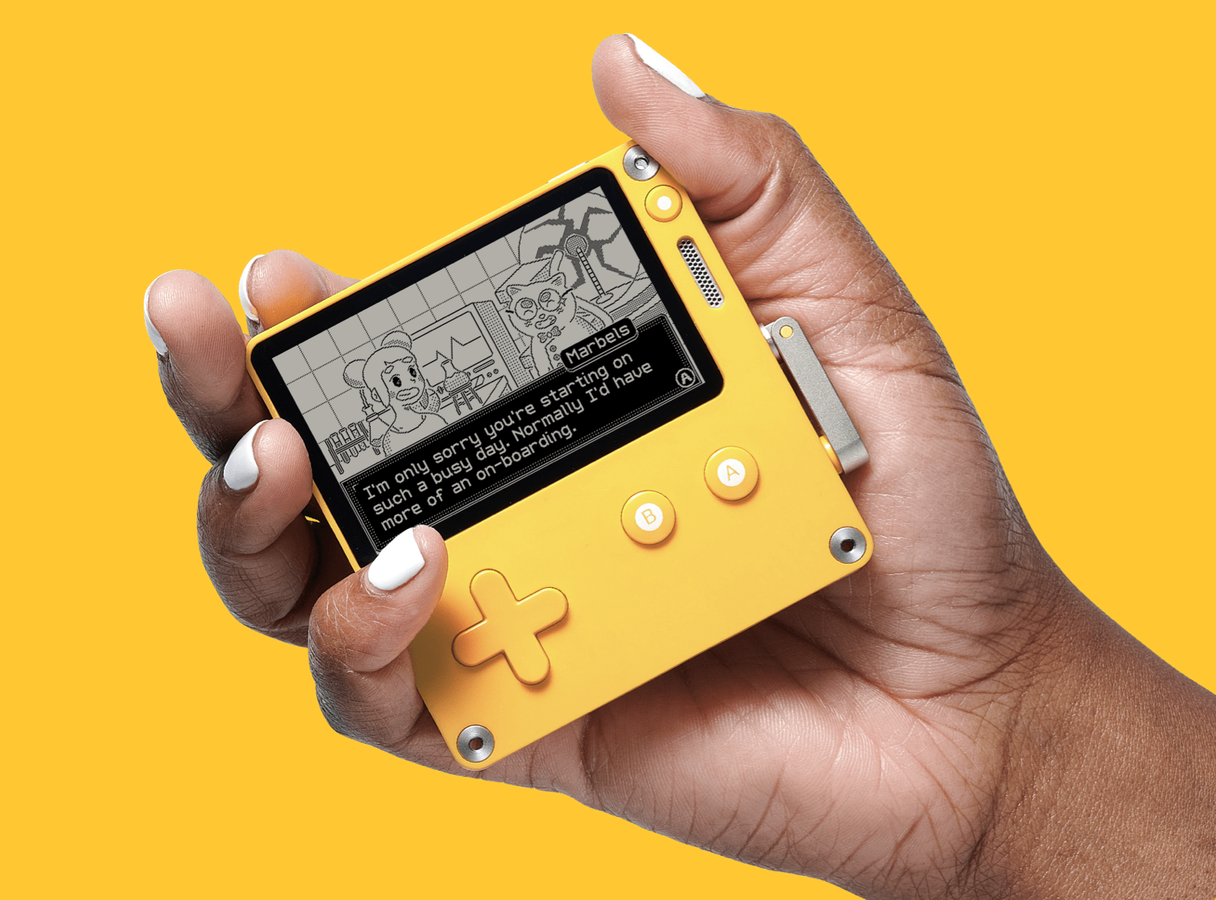 Playdate is familiar, but unlike anything you’ve ever seen. It has a very special black and white screen – not backlit, but super reflective – that looks way more amazing than you’re probably imagining.