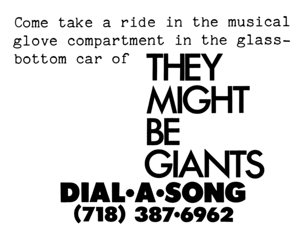 Dial-A-Song is a telephone service operated by John Linnell and John Flansburgh of They Might Be Giants that originally ran from 1983 to 2006. It returned in a new form for the years of 2015 and 2018. The service was originally available as “a regular phone call to Brooklyn”, at the number (718) 387-6962. Dial-A-Song consisted of an answering machine, which would pick up calls and play back a song in the place of an outgoing message. The model of answering machine employed changed throughout Dial-A-Song’s tenure, but most machines played back the message via a cassette tape. This system made it easy for the Johns to record demos, jingles, or even previews of studio tracks (often with a spoken message by John Flansburgh at the end) onto cassettes and then queue them into the machine. Dial-A-Song was updated often, although many tracks stayed in rotation for a while after their initial appearances… More here.