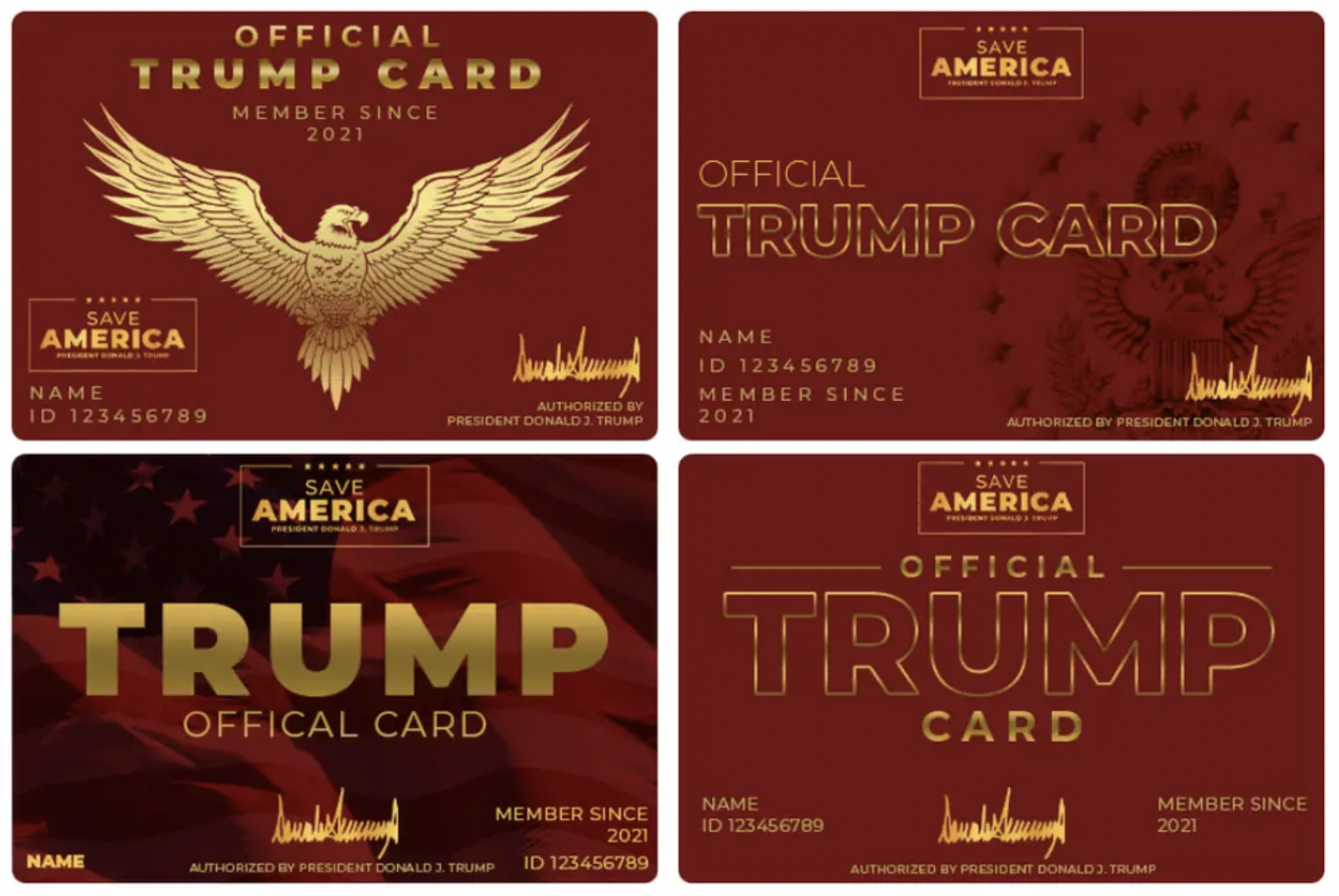 “The card you select will be carried by Patriots all around the Country,” the first email said. “They will be a sign of your dedicated support to our movement to SAVE AMERICA, and I’m putting my full trust in you.”