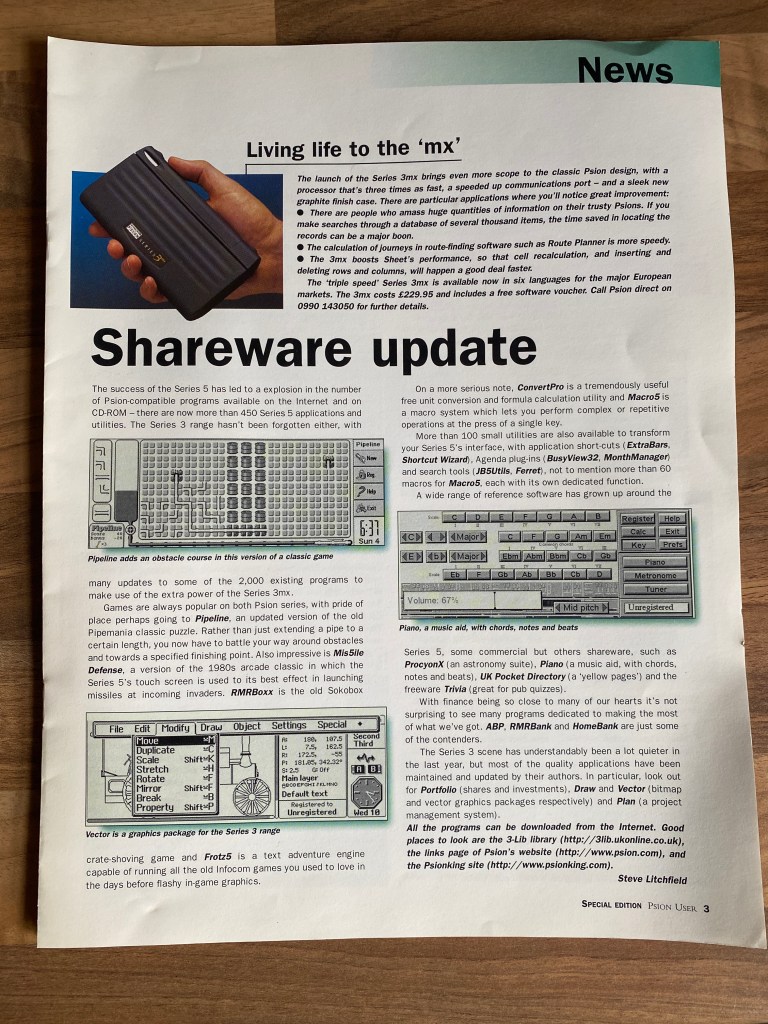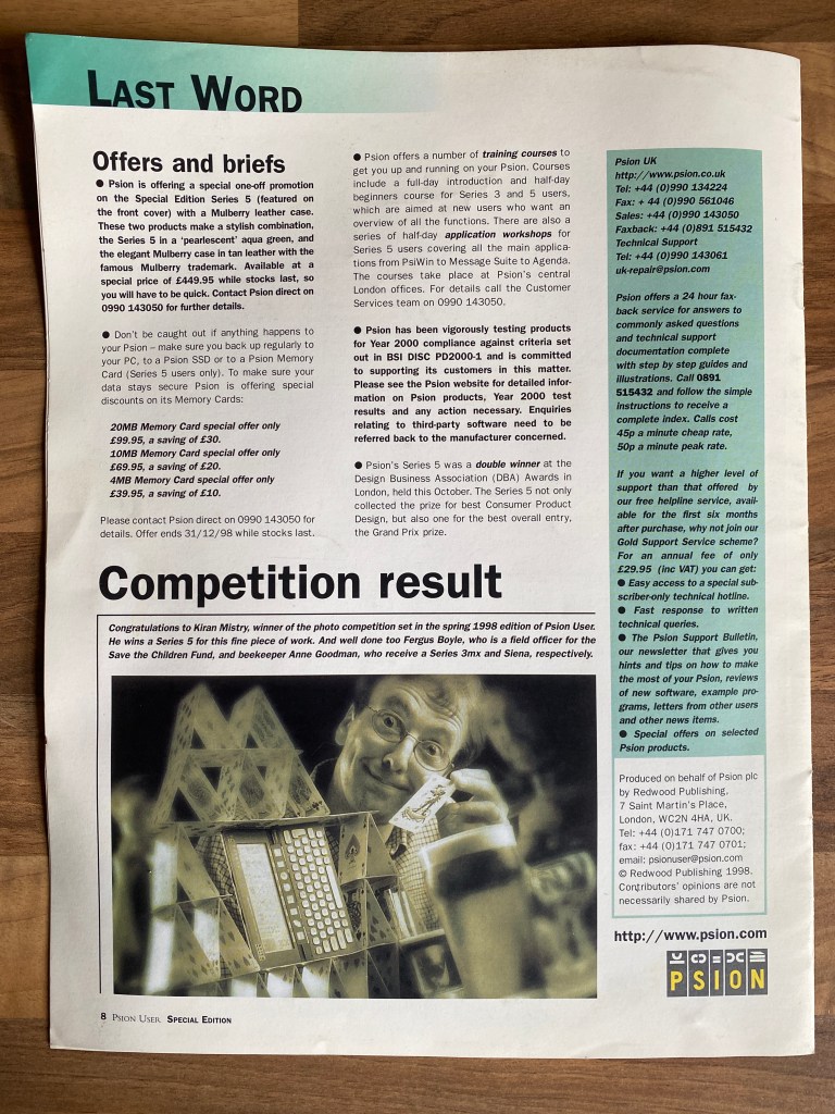 My daughter found a copy of Psion User that has been lost in a cupboard and it dates back 23 years. I still have some fond moments come back to me reading this. Hopefully some of you will too.