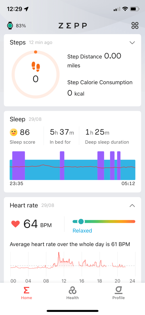 The app, Zepp, is impressive and one of the better fitness solutions I have seen on iOS with all of the data presented cleanly and in an organised way, albeit with bits of Chinese text scattered around the place. Syncing seems to take some time when I start it up which is strange to see after using the Apple Watch, but overall I see a lot here for the price.