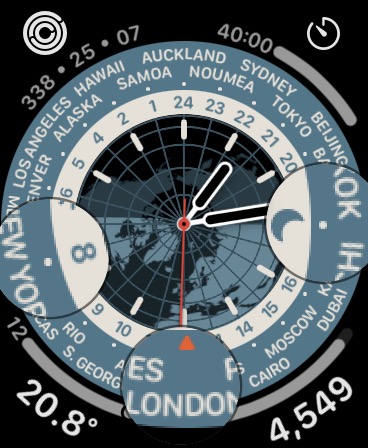 If you do not know how to use a world time complication all you need to do is look for a specific city. It’s current hour will be displayed and you can then use the minute hand to complete the process. In the case of a smartwatch it will be automatically updated and you can even see which cities are in darkness and which are in daytime. Apple has implemented this very well indeed and it actually works better than most mechanical options I have tried.