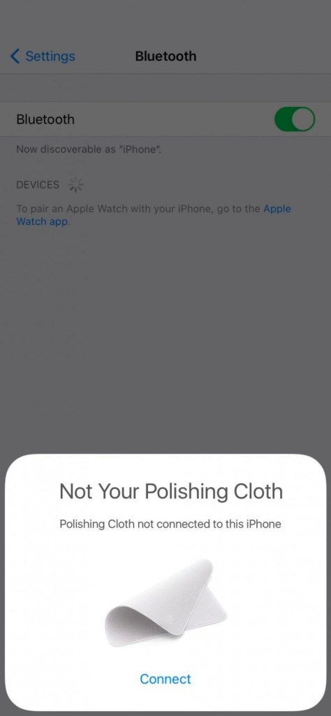 As it happens, I was at the Apple Store yesterday having the battery replaced on my old iPhone X and I asked about the polishing cloth. The man helping me, who was absolutely brilliant by the way, just rolled his eyes and seemed to know I was not being serious. I won’t repeat the rest of the conversation, but needless to say he went way off script😀