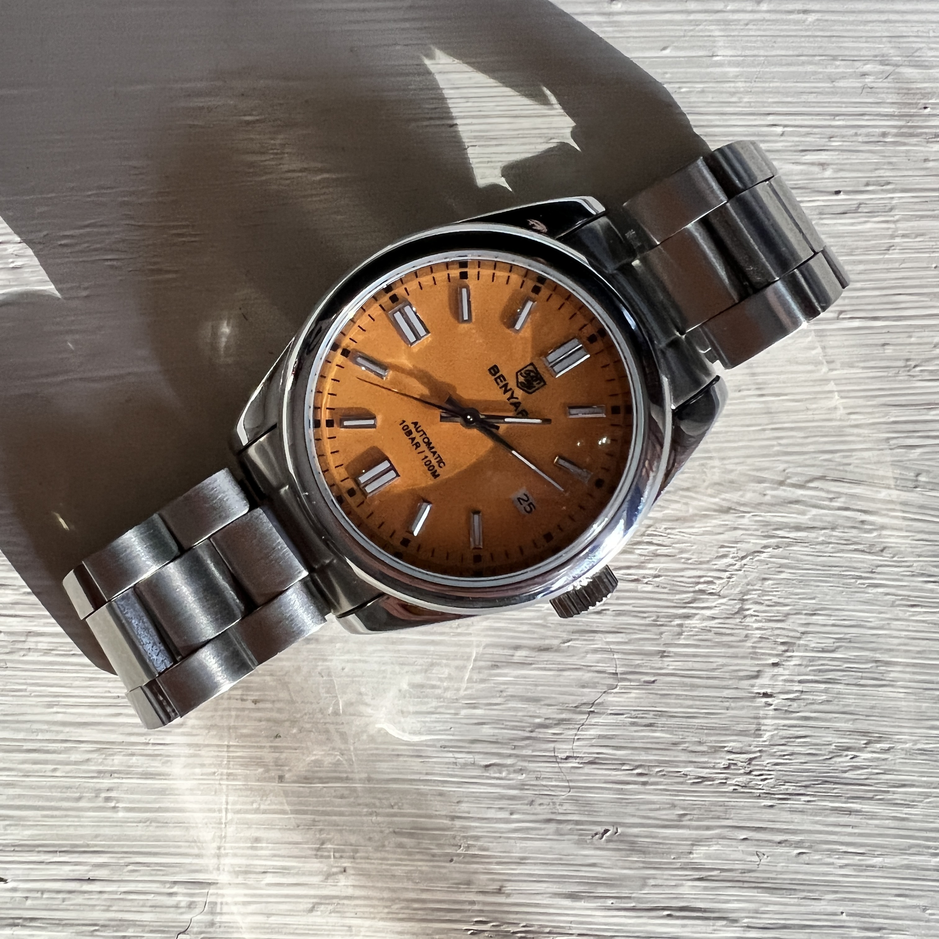The BENYAR Elegant is without doubt a homage to the Rolex Oyster Perpetual which you can see below.
