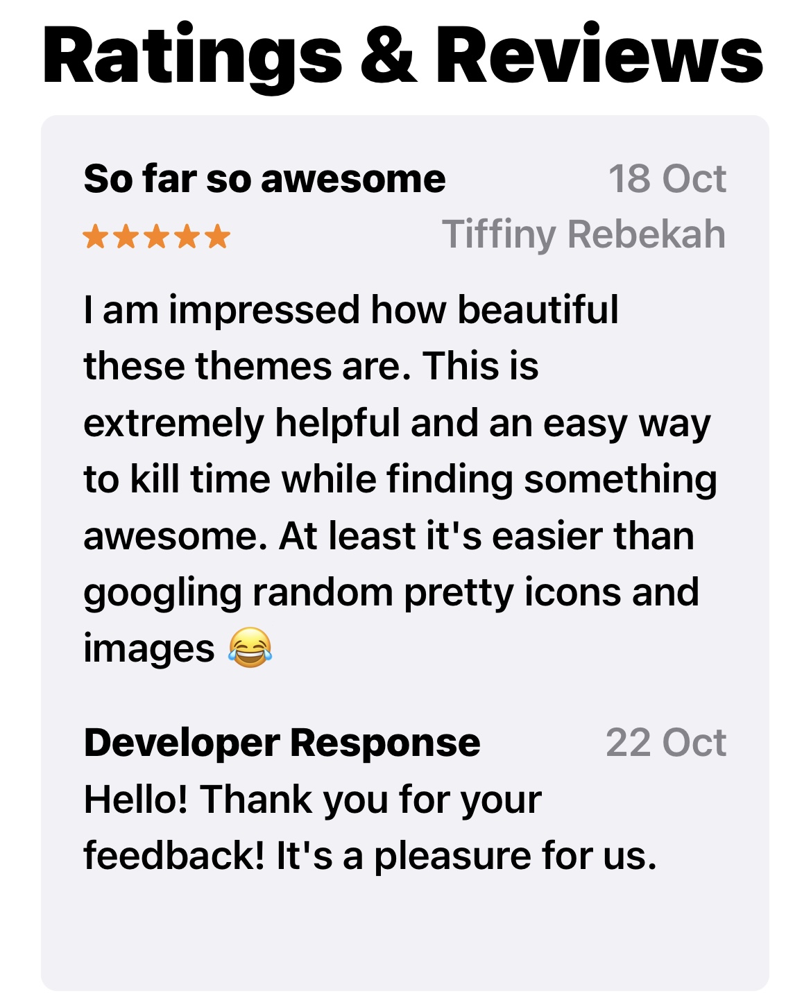 Tiffiny seems to like it and gave it a 5 star review, and the developer responded to thank her.