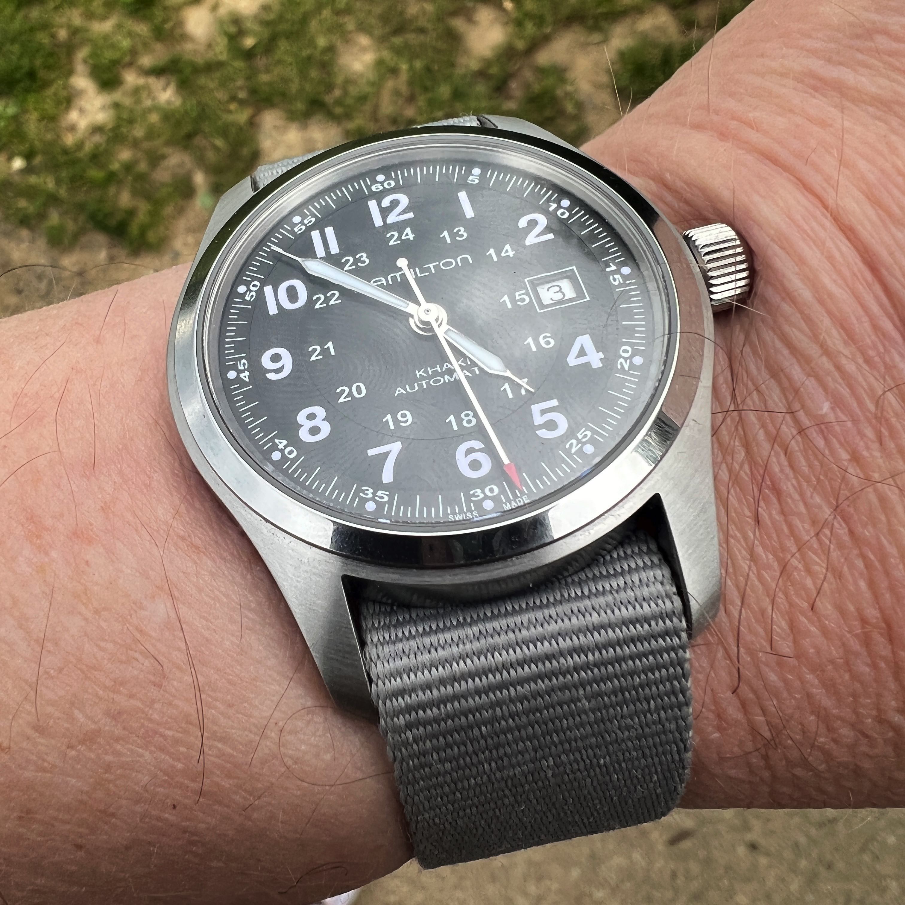 The Hamilton Khaki Automatic is, to me, the quintessential watch. I owned one when I first got into watch for approximately 1 hour. A purchase from eBay, but alas the one I bought was way out and lost over 10 minutes a day. The seller was nice, but he had no other stock and so I left the watch alone, presuming they were all like that.