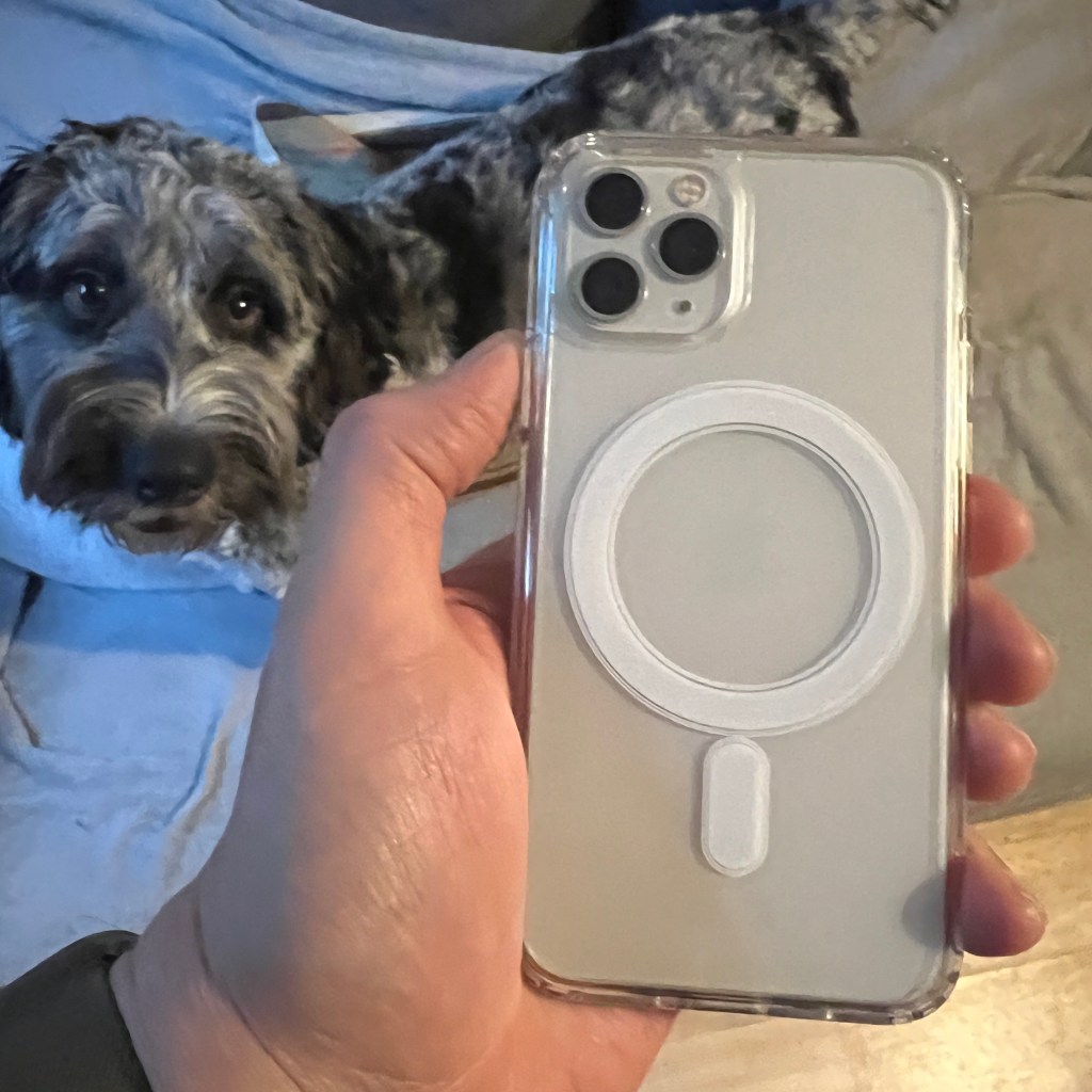And then I saw the (deep breath!) RHOADA Clear For iPhone 11 Pro Case 5.8″ Magnetic Case Compatible with MagSafe Charging, [Anti-Yellow] [Ultra Slim] [200% Drop Protection] PC + Silicone Frame Protective Cover… which was on sale for £12.99 from Amazon and decided to give it a try.