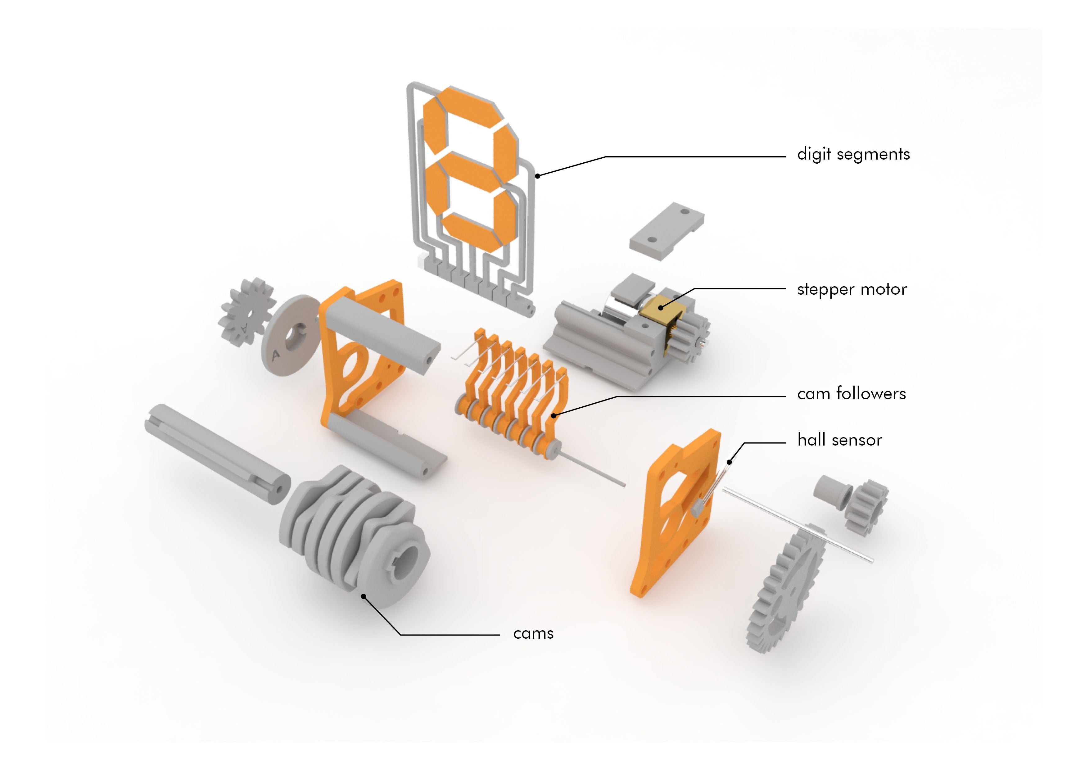 This project was inspired by another similar project that I saw a few years back. I mostly rebuilt it completely and challenged myself to print it as small as possible on a standard 3d printer using a standard nozzle. The size was determined by the smallest screw hole that was possible. The clock consists of 4 modules which work in a pair to display the time. The mechanism is quite simple using a set of cams and followers. The stepper motor turns one module and the second one is driven by a carry over mechanism. The right side pair displays the minutes and the left side displays the hours… More here.