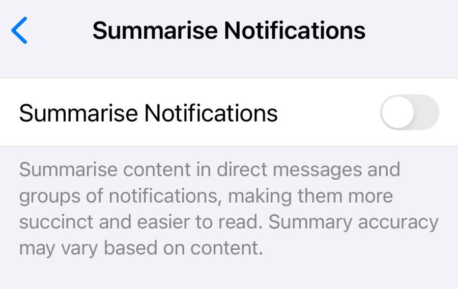 Summarising notifications has proved to be haphazard at best and it didn’t take me long to disable the feature because I found that it was wasting time as I had to look at each individual message anyway- for whatever reason, the way it works on Apple products at the moment seems to be overly friendly, but without the ability to be specific enough.