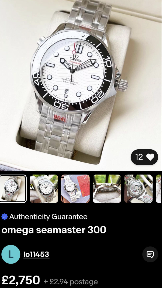 The above eBay auction listing shows a fake Omega Seamaster 300- the reasons it is a fake are obvious to watch saddos like me, but it would be easy to be taken in if you are not a ‘saddo like me’.