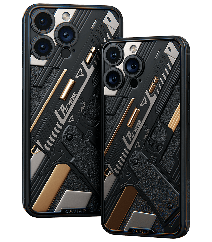 A relief of the TTI JW4 Pit Viper pistol on a titanium body. Individual details are coated with 24-carat gold… More here.