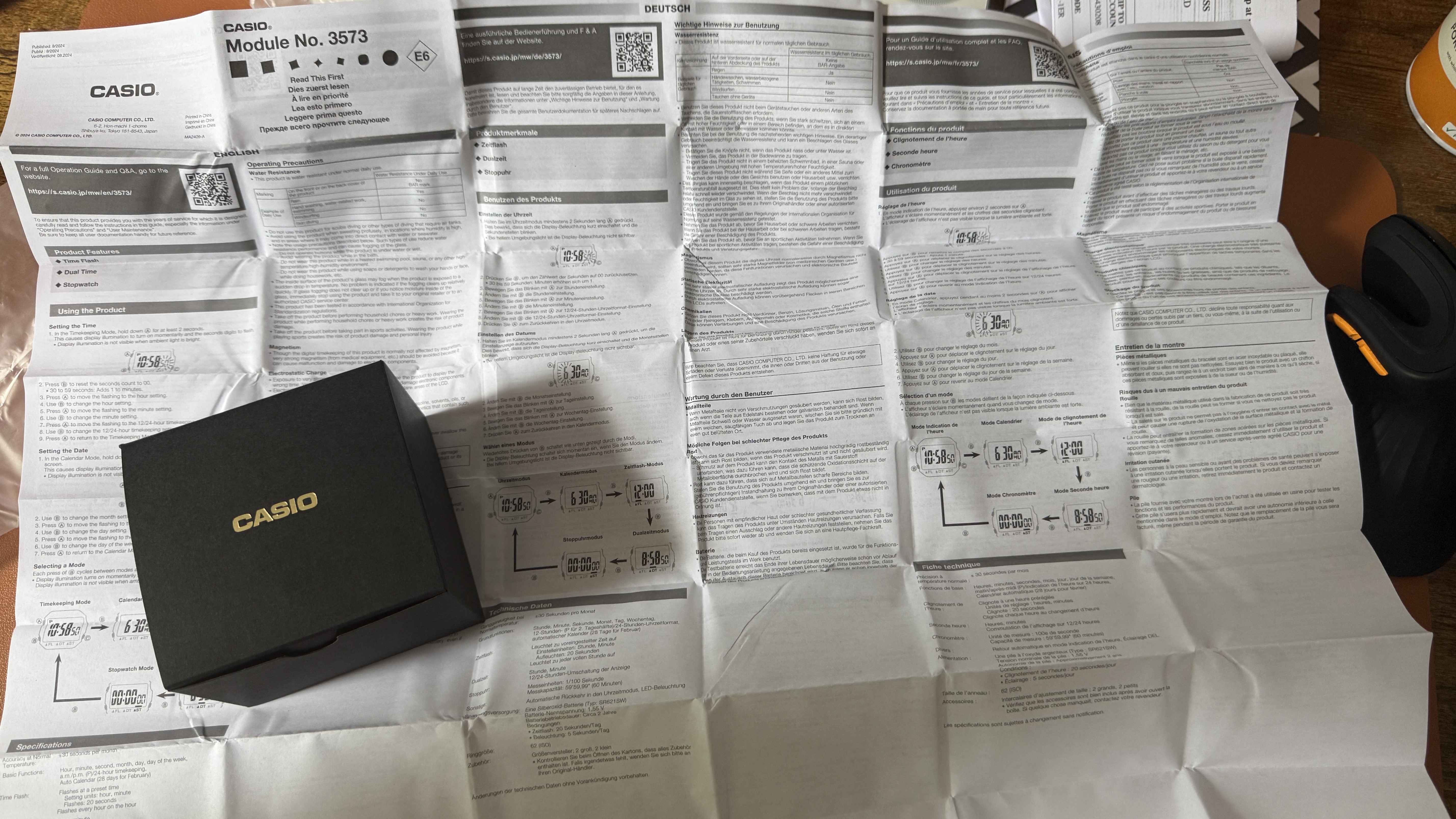 Everything is small apart from the instructions which in typical Casio style are HUGE! This is a fully functioning watch in many surprising ways.