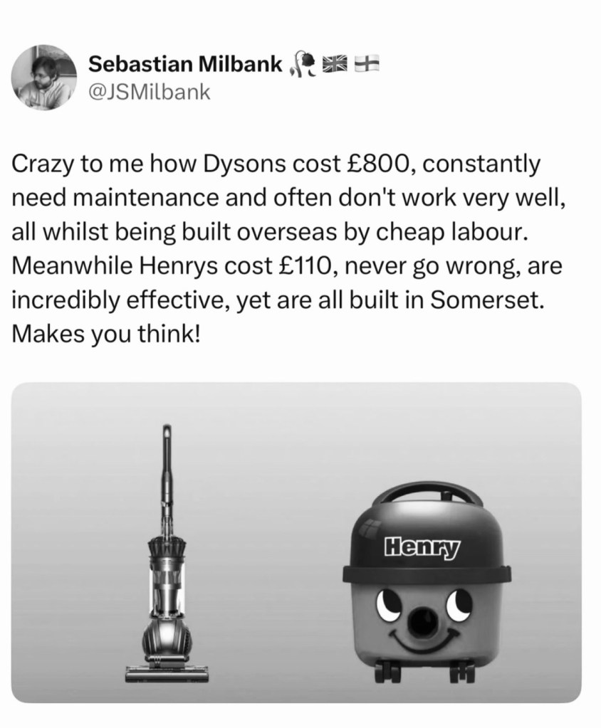 Perhaps the best response to the thread was the following which alludes to James Dyson taking his factory abroad straight after being a cheerleader for Brexit-