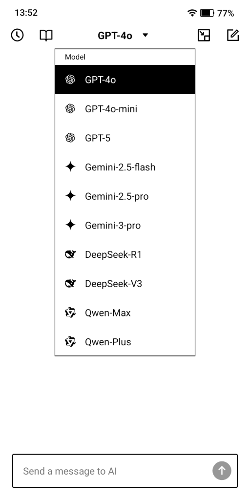 You will not be using the Carta for comics or graphic novels unless you are under 30 and have the eyes for it, and PDFs etc could be problematic, but for normal reading, email etc it works very well indeed. AI is heavily touted here and there is even a dedicated button for it plus an annoying unremovable Knowledge Base widget on the Home Screen that takes up roughly 40% of the screen space. Using an alternative launcher solves the problem though and I believe that it is possible to hack this button for another use. I have used it sparingly so far, but support is built in for a lot of AI engines.