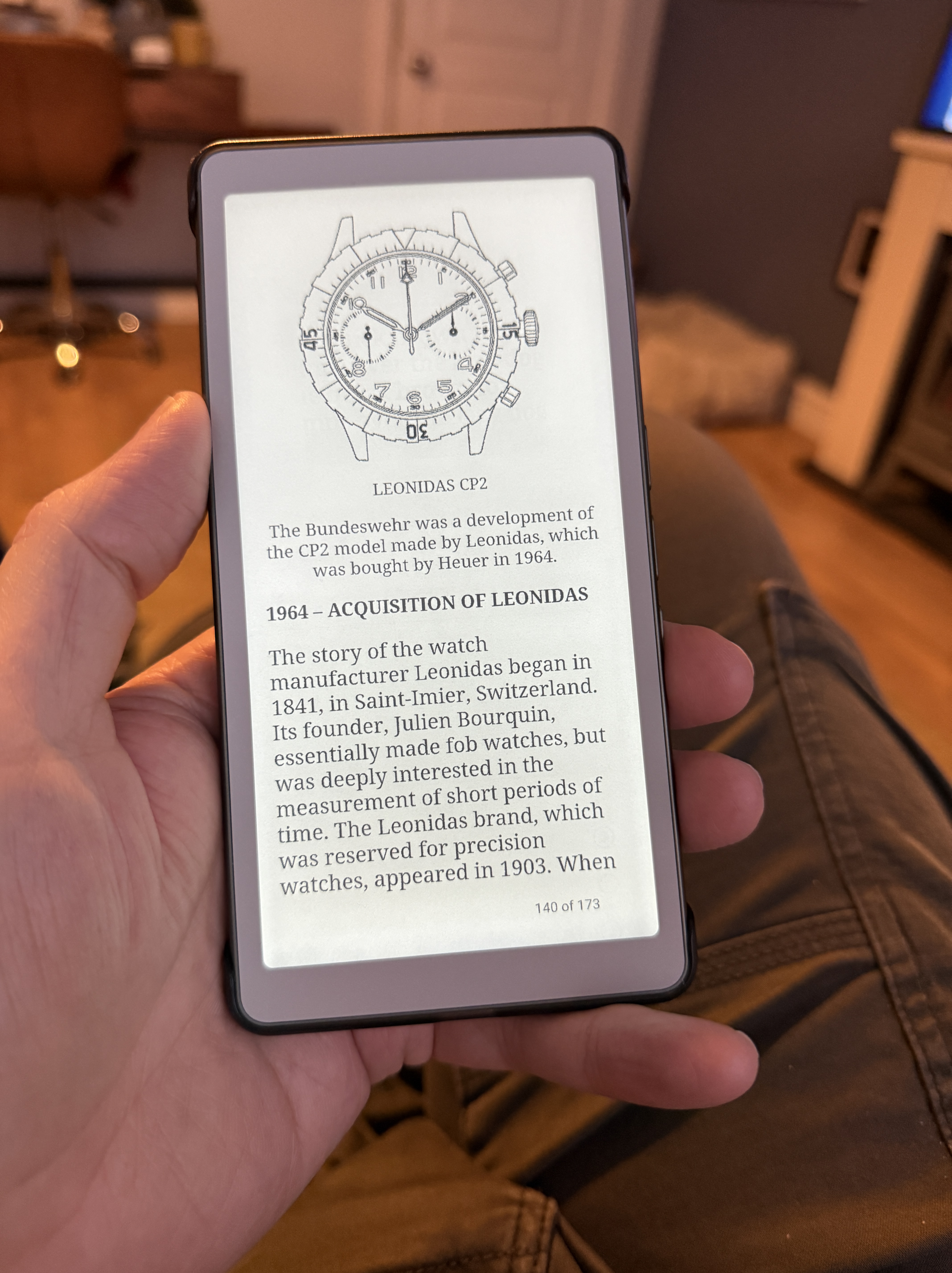 If you want a reader that does not cause eye strain and which is super pocketable look no further. With Kindle, Kobo and any other reader software you like available, you can carry your whole library with you. Throw in read it later apps such as Instapaper and the options become endless. It is hard to put my finger on why, but even at such a small size I get the same immersive feeling when reading as I do on my Kobo Libra Colour. It’s really weird, but it is perfectly readable and I have been keeping up my reading volume. The Kobo is in trouble.